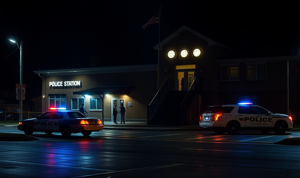 The desk sergeant takes the papers, reviews them with the careful deliberation of someone who’s worked this desk too long. He types into his terminal, eyes scanning the screen. His expression shifts to confusion, then something like concern.